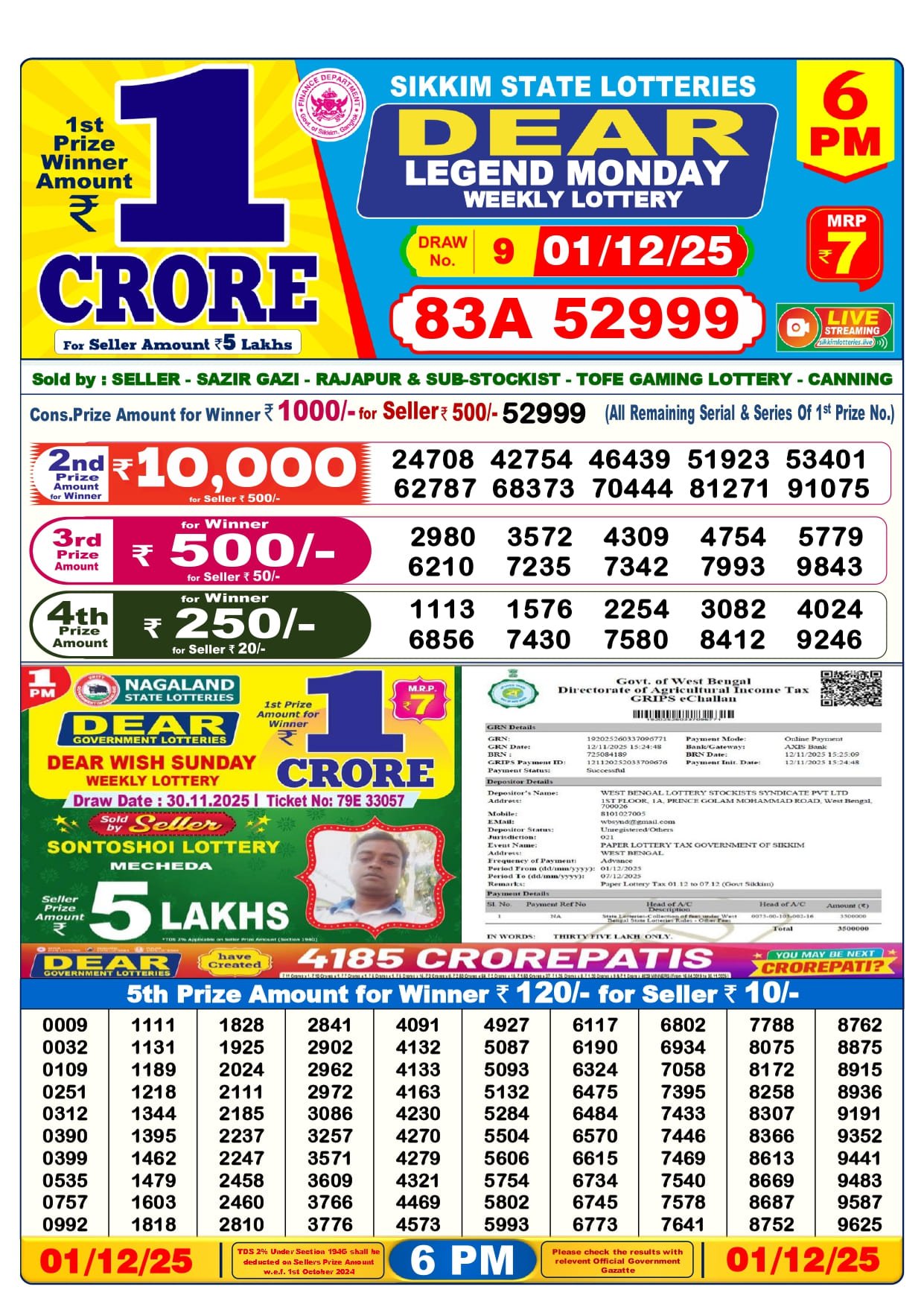 1 Tarikh Lottery Result 1 PM 6 PM 8 PM 01-12-2025