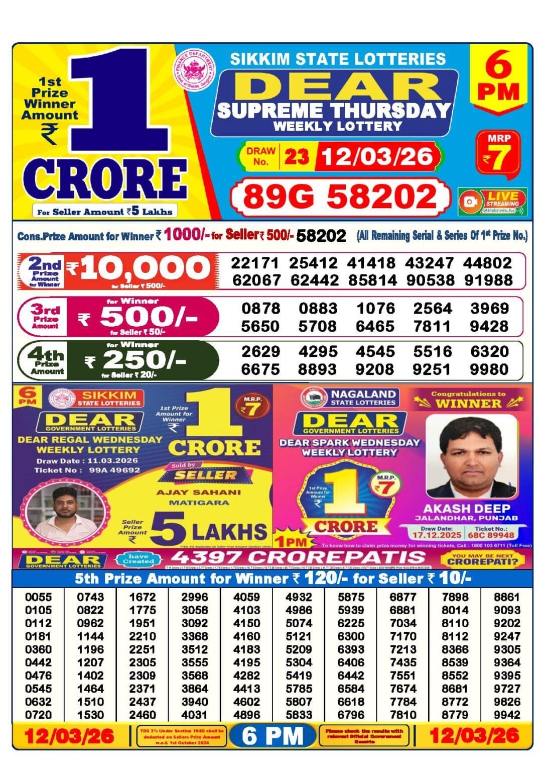 12 Tarikh Lottery Result এর Details গুলি নিচে দেওয়া হল
