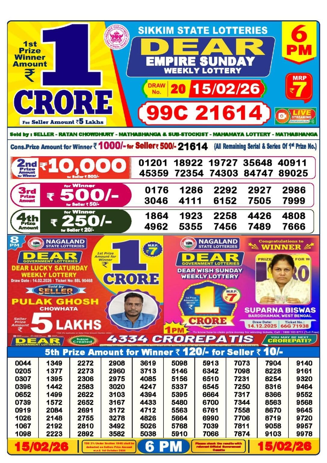 15 Tarikh Lottery Result এর Details গুলি নিচে দেওয়া হল
