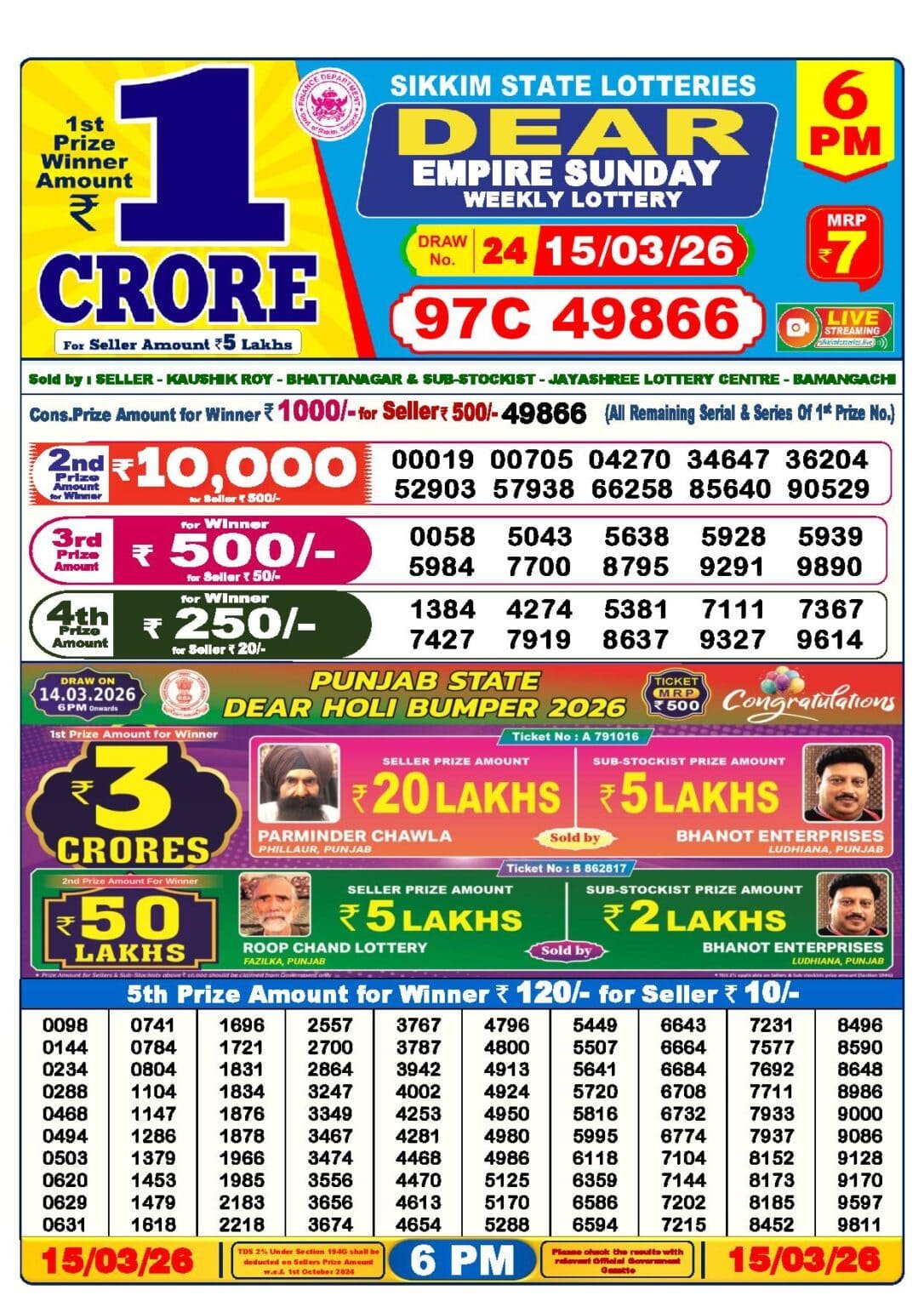 15 Tarikh Lottery Sambad 6 PM Evening Result | 15 তারিখ লটারি সংবাদ 6 PM রেজাল্ট