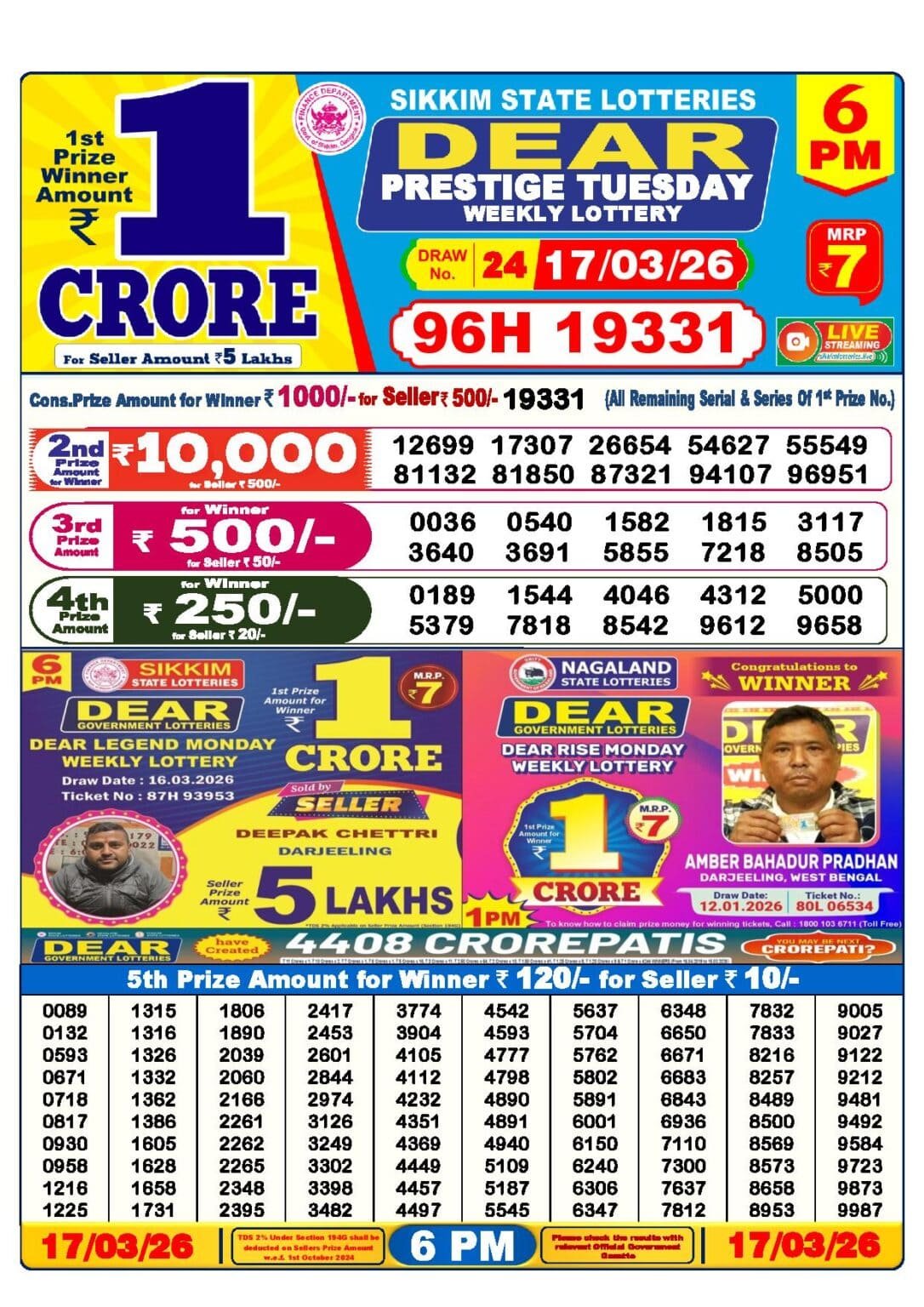 17 Tarikh Lottery Result এর Details গুলি নিচে দেওয়া হল