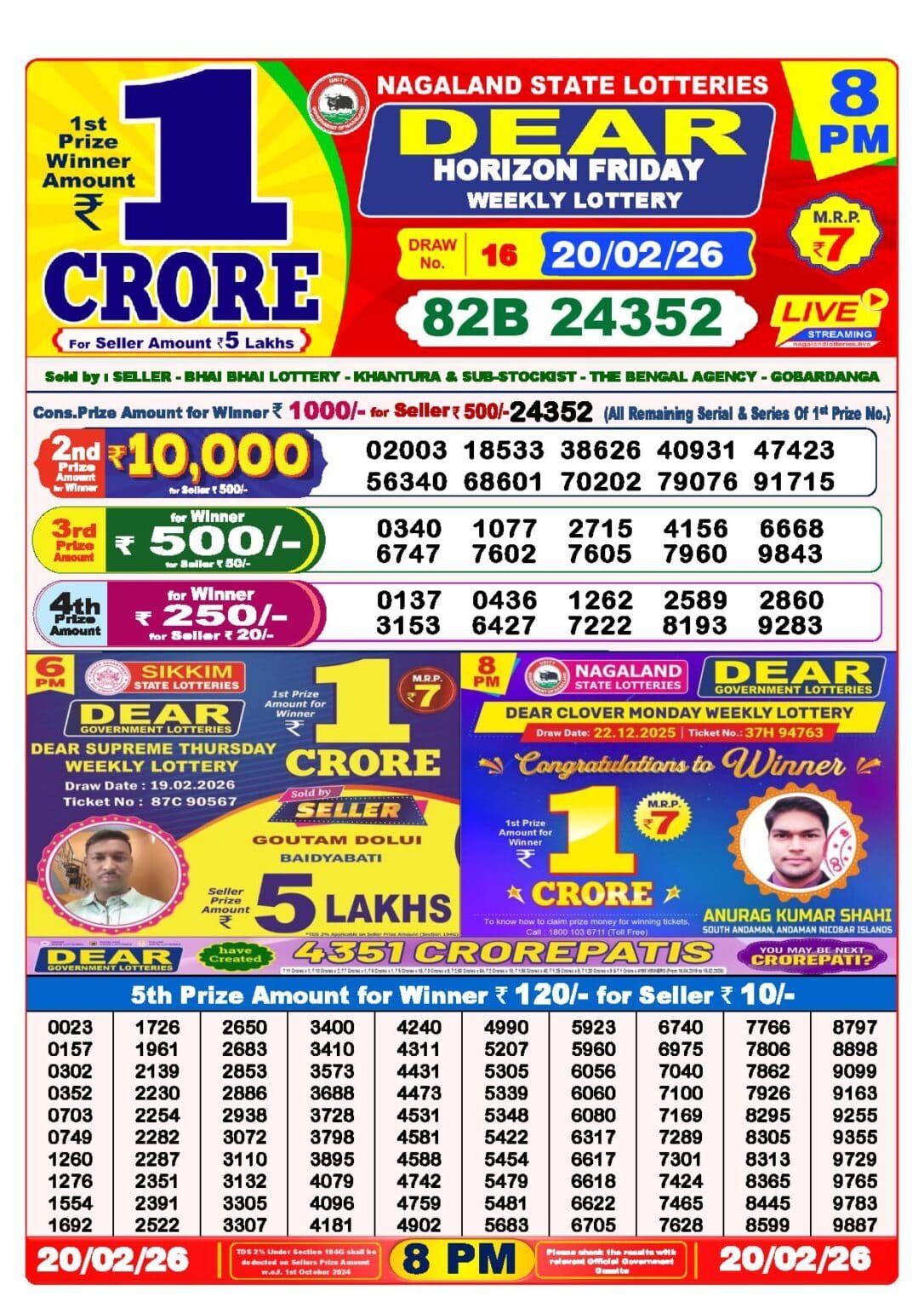 20 Tarikh Lottery Result এর Details গুলি নিচে দেওয়া হল