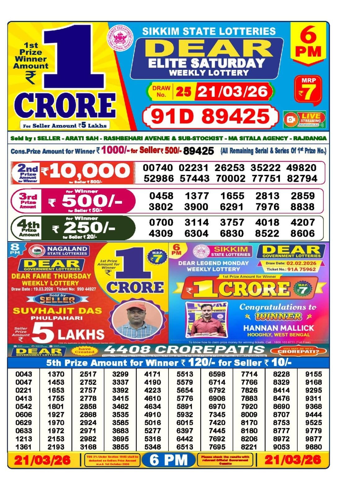 21 Tarikh Lottery Sambad Result এর Details গুলি নিচে দেওয়া হল