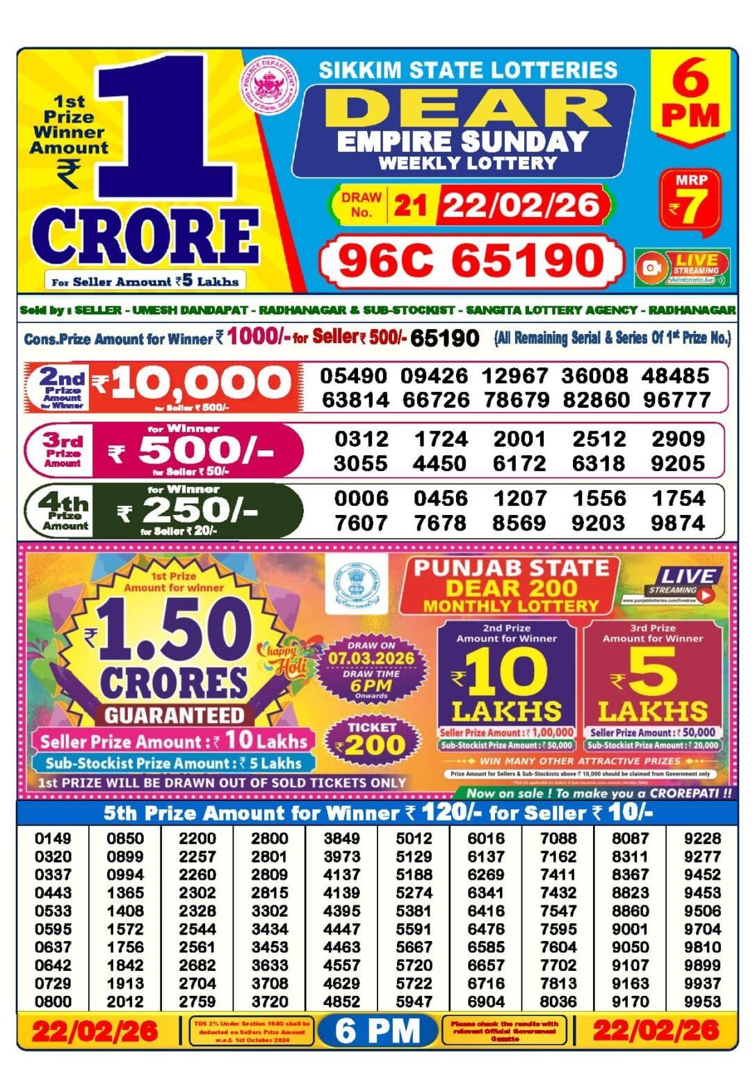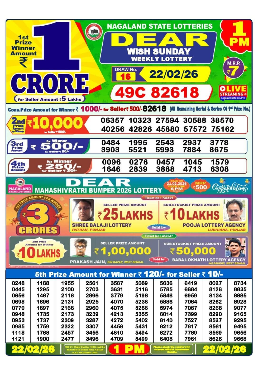 22 Tarikh Lottery Result এর Details গুলি নিচে দেওয়া হল