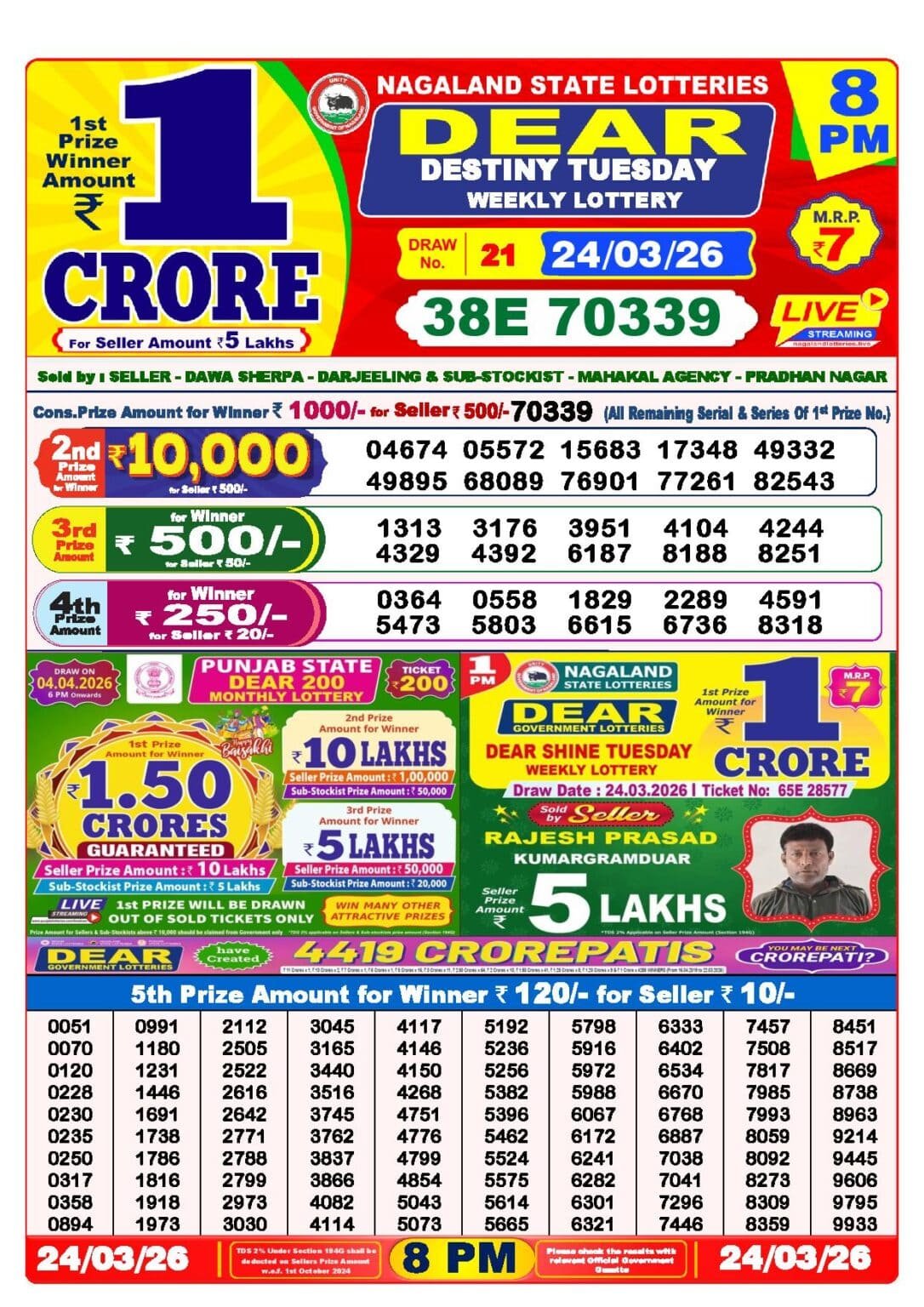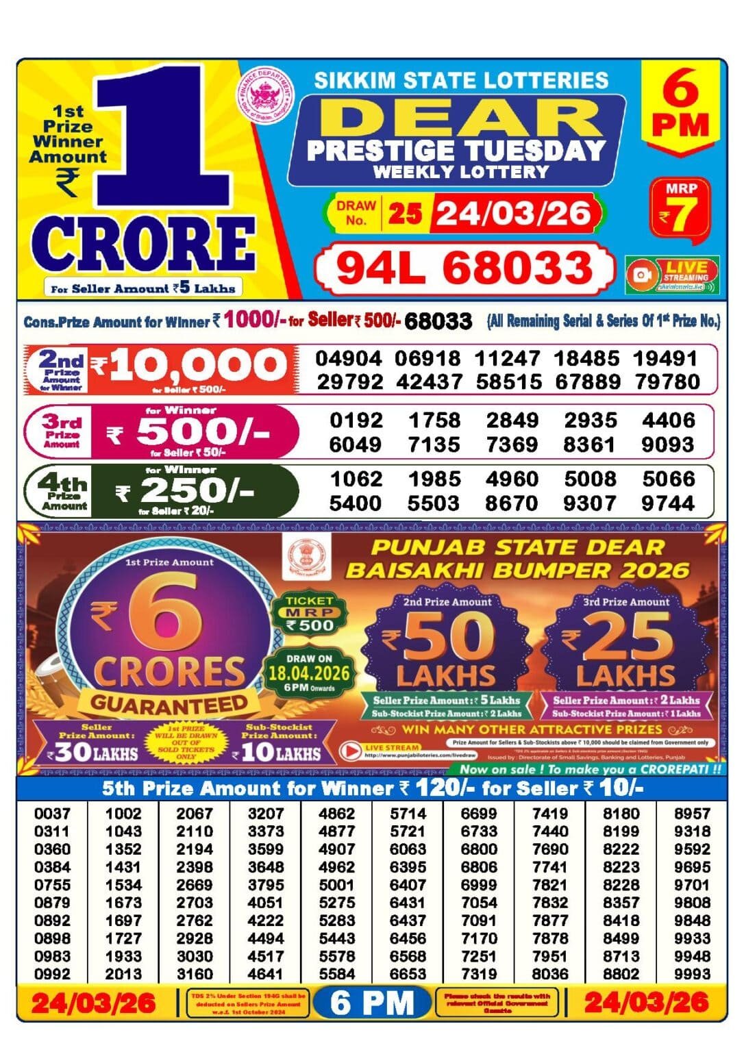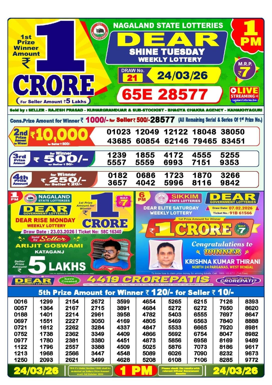 24 Tarikh Lottery Result এর Details গুলি নিচে দেওয়া হল
