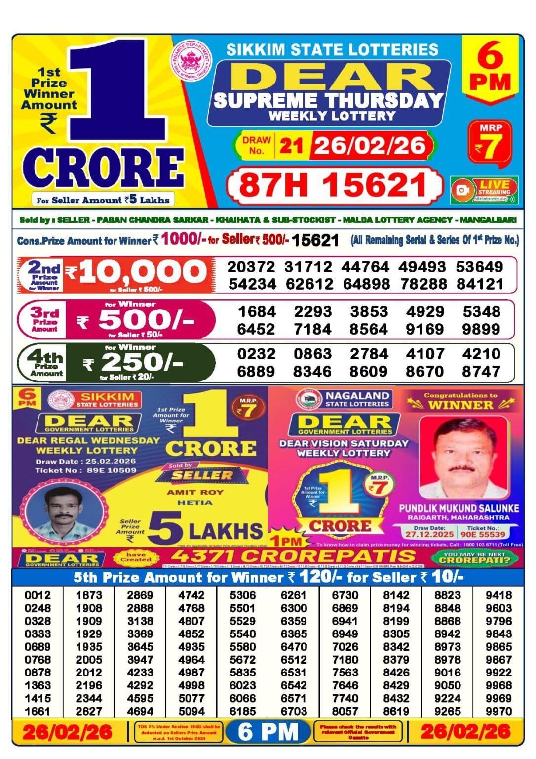 Lottery Name- Nagaland State Dear Lottery Sambad