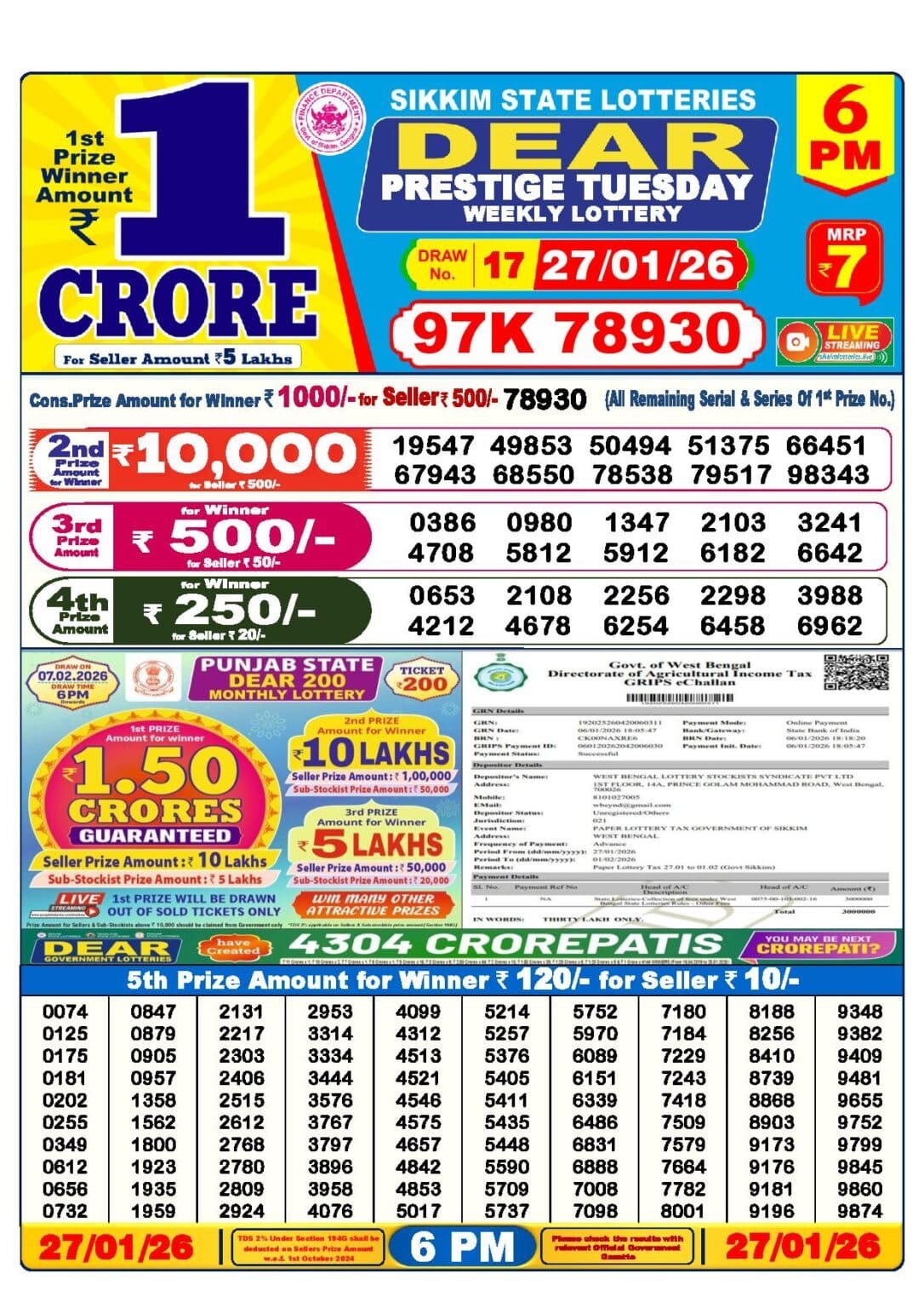 27 Tarikh Lottery Result এর Details গুলি নিচে দেওয়া হল