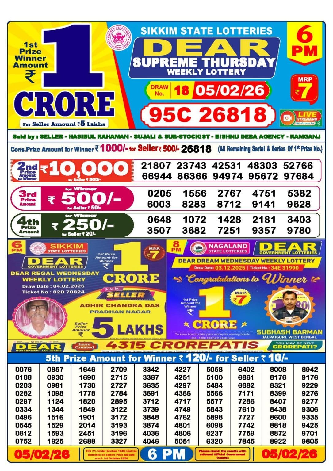 5 Tarikh Lottery Sambad 1 PM 6 PM 8 PM Result 05-02-2026