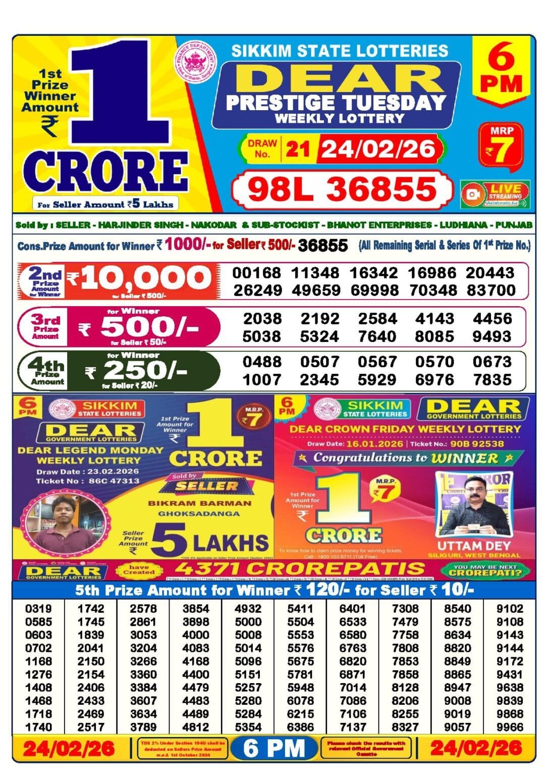 Lottery Sambad Today 6 PM Result Evening
