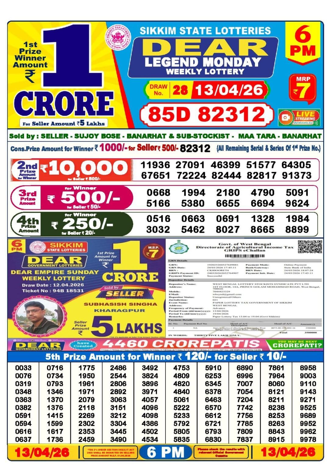 | 1st Prize- | 1 Crore টাকা |