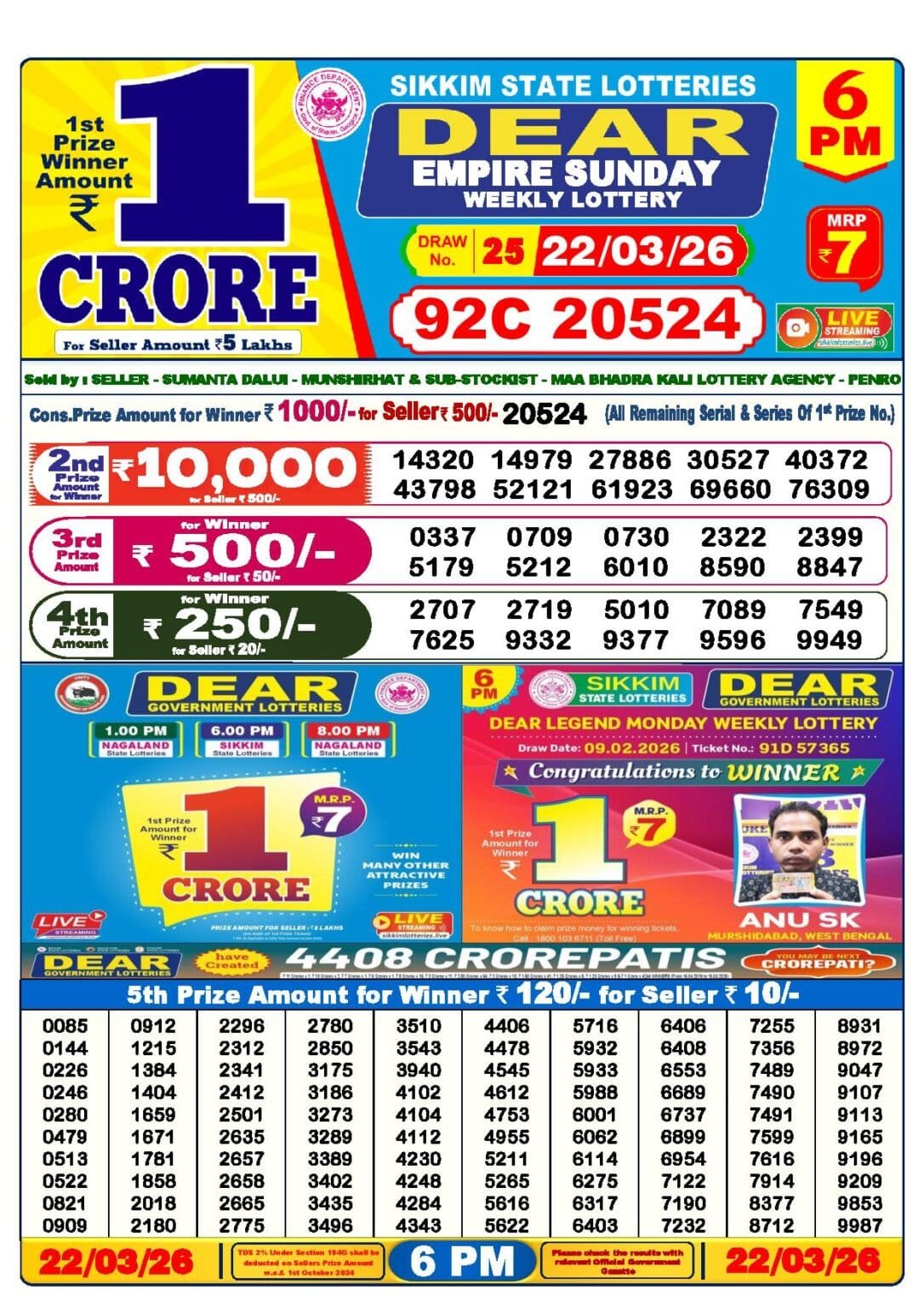 Lottery Sambad Today 6 PM Result এর Details গুলি নিচে দেওয়া হল